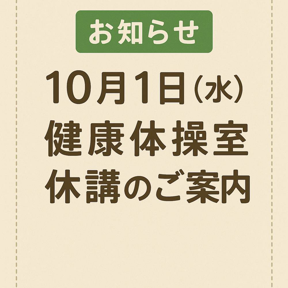 【お知らせ】10月1日(水)健康体操教室 休講のご案内